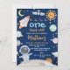 Blue Space First Trip Around Sun primeiro aniversario Invitation Cute outer space O convite para o primeiro aniversario do garoto com astronauta, planetas, espaçonave, satélite, sol e lua. A primeira viagem deste rapaz ao redor do primeiro convite de aniversário do sol é ideal para um tema de primeiro aniversário no espaço exterior.