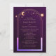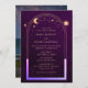 O Celestial Rainbow Deep Plum Sun Moon Stars Astronomy Cosmic Space Foto Invisions apresenta o sol colorido arco-íris, a lua e as estrelas se enquadram num fundo profundo de ameixa. Dentro é a sua informação de convite de casamento. Personalize editando o texto nas caixas de texto e adicionando sua foto favorita. Projetado para você por ©Evco Studio www.zazzle.com/store/evcostudio