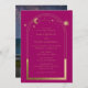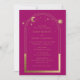 Lavanda Mística de Música Rosa Estrela Rosa Astronomia Espacial Foto Convites de Casamento Contém um sol dourado, lua e estrelas num fundo magenta-rosa escuro. Dentro é a sua informação de convite de casamento. Personalize editando o texto nas caixas de texto e adicionando sua foto favorita. Projetado para você por ©Evco Studio www.zazzle.com/store/evcostudio