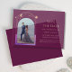 A Mística Chic Fuchsia Dourada Astronomia Espacial da Lua Foto Convites de Casamento apresenta um sol roxo e dourado, lua e estrelas em um fundo de fúcsia escuro. Dentro é a sua informação de convite de casamento. Personalize editando o texto nas caixas de texto e adicionando sua foto favorita. Projetado para você por ©Evco Studio www.zazzle.com/store/evcostudio
