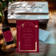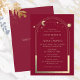 A Mística Borgonha Sun Star Astronomy Space Wedding Invisions apresenta sol, lua e estrelas com uma estrutura dourada sobre fundo de burlu. Dentro é a sua informação de convite de casamento. Personalize editando o texto nas caixas de texto. Projetado para você por ©Evco Studio www.zazzle.com/store/evcostudio