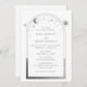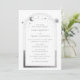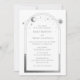 A Astronomia Espacial da Lua Sun Star Star Sun Silver Mística Branca As Convites de Casamento exibem sol, lua e estrelas com uma moldura prateada sobre fundo branco. Dentro é a sua informação de convite de casamento. Personalize editando o texto nas caixas de texto. Projetado para você por ©Evco Studio www.zazzle.com/store/evcostudio