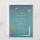 Místico Teal Verde Azul, Dourado astronômica espacial da Lua Solar Astronomia Espacial A Invasões mostra sol, lua e estrelas com uma estrutura dourada sobre um fundo azul verde-verde-verde. Dentro é a sua informação de convite de casamento. Personalize editando o texto nas caixas de texto. Projetado para você por ©Evco Studio www.zazzle.com/store/evcostudio