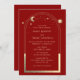 A Astronomia Espacial da Lua da Estrela-da-Sol Dourada Vermelha Mística Vermelha Vermelha Astronomia Espacial Os Convites apresentam sol, lua e estrelas com uma estrutura dourada sobre um fundo vermelho escuro. Dentro é a sua informação de convite de casamento. Personalize editando o texto nas caixas de texto. Projetado para você por ©Evco Studio www.zazzle.com/store/evcostudio