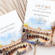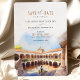 Anuncie o seu próximo casamento com este cartão "Salve a Data", com uma ilustração impressionante da cor d'água de Casa de Pilatos em Sevilha, Espanha. A design capta a essência da elegância espanhola com uma intrincada visão de pátio, enquadrada por arcos iluminados pelo sol e pela clássica arquitetura andaluz em tons suaves de terracota, marfim e azul-céu. Ideal para um casamento de destino romântico em Sevilha, este cartão reflete o charme e a sofisticação da Espanha do Sul. Perfeito por dar o tom de uma celebração mergulhada na história e na beleza.