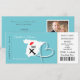 Um convite divertido, mas na moda num cartão de embarque/estilo bilhete para casais que se casam no exterior, que é mostrado em uma silhueta de mapa branco com um doce coração vermelho de amor, silhueta de avião e forma cardíaca giratória. O contrário é fácil de personalizar com seus detalhes pessoais e uma foto do casal feliz. Ideal para casamentos com cidades espanholas e praias costeiras.