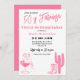 Espanhol 50 e Fabulosa Convite de aniversário Ocidental - Comemore seu 50º aniversário em estilo com este vibrante convite branco, preto e rosa! Apresentando uma jovem rosa brincalhona em um copo de martini, botas de cowboy, e um cacto, esta design de temática ocidental é perfeita para uma celebração divertida e fabulosa. Com a frase '50 y Fabulosa' em uma charmosa fonte vintage do país, é ideal para uma festa de aniversário ocidental ou inspirada em cowgirl. Disponível como convite para impressão e download digital instantâneo, fazer fácil de compartilhar via texto, email ou mídia social. Uma escolha perfeita para uma inesquecível festa de 50 anos!