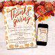 Feliz Dia de Ação de Graças em espanhol Checkered Orange e Tan Pumpkins Invitation - modelo editável disponível como download digital instantâneo perfeito para convites de última hora para festas.