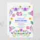 Convite de aniversário 45º Fiesta Floral mexicana espanhola - Um vibrante e colorido convite de aniversário para ela. Celebre seu aniversário de uma forma grande. Totalmente personalizável, este convite está disponível em formatos impressos e digitais, fazer fácil de compartilhar via texto, email ou mídia social. Perfeito por marcar este marco extraordinário, esta design divertida e feliz acrescenta um toque elegante à sua celebração inesquecível.