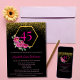 Celebra el 45º cumpleaños de una mujer excepcional con esta Invitación Elegante de Cumpleaños en Español en Negro, Dorado y Rosa. Con un fondo negro elegante y un brillante marco dorado en la parte superior, esta invitación emana estilo y distin ción. En el centro, un hexágono dorado se adorna con hermosas peonías en acuarela en vibrantes tonos de rosa fuerte y magenta, con el número "45" resaltado en intenso. Los detalles del están presentados en una combación de tipografía en bloque en rosa claro y fuerte, junto com a caligrafia refinada, para completamente según tus deseos personalizável. Esta invitación de 45º cumpleaños se ofrece como descarga digital instantánea, lo que la convierte en una opción ideal para compartir por mensaje de texto, correo eletrónico o redes sociais—una alternativa asequível y. Ya sea que estés organizando una celebración con de jardín, una encantadora fiesta de té, o un evento sofisticado en primavera, verano u otoño, este diseño es perfecto para quienes desfrutan del llamativo contraste entre el rosa y el negro. Seguro que dejará una impresión inolvidable y hará que tu celebración sea realmente especial! Celebrar o 45º aniversário de uma mulher notável com este 45º Convite Espanhol de Aniversário Elegante em Preto, Dourado e Rosa. Apresentando um fundo preto elegante e um quadro de ouro brilhante no topo, este convite exude estilo e distinção. No centro, um hexágono-ouro é enfeitado com lindas peônias de aquarela em tons vibrantes de rosa quente e magenta, com o número "45" destacado em rosa intenso. Os detalhes do evento são apresentados em uma combinação de tipografia de blocos rosa-claro e quente, juntamente com caligrafia refinada, todos totalmente personalizáveis para se adequarem às suas preferências. Este convite de 45 anos está disponível como um download digital instantâneo, fazer-o como uma opção ideal para compartilhamento via texto, e-mail ou mídia social — uma escolha de barato e eco-amigável. Quer você esteja planejando uma celebração temática de jardim, uma deliciosa festa de chá, ou um evento sofisticado em primavera, verão, ou outono, esta design é perfeita para aqueles que apreciam o impressionante contraste de rosa e preto. Com certeza deixa uma impressão duradoura e torna sua celebração realmente especial!