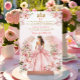EDITABLE espanhola Blush Pink Princess Dourado 15 Años Años Aniversário Convite Elegante Pink Princesa Dress Floral Mis Quince Convite Quinceañera 15 Anos, 16 Aniversário Dourado Glitter