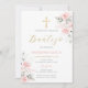 Convites Espanhol Rosa Florm Baptism Girl