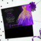Uma design de Quinceañera festiva, mas elegante, com um brilhante tom roxo e dourado vestido espanhol num fundo brilhante de cintilação roxo a preto. Apresenta muitas cinzas roxas para uma noite mágica. Design composto por Designs Holiday Hearts.