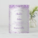 Um plano de fundo de prata falsa. Decorado com brilho violeta e roxo escuro, brilhos. Personalize e adicione seus nomes e detalhes. Traseira: fundo prateado sujo e falso brilho.