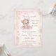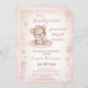 Adorável convite para um chá de fraldas de menina de inverno com uma menina de urso fofinha com um cachecol, falso falso falso floco de neve ouro e estrelas em rosa e bege. Personalize facilmente todo o texto. - Kate Eden Art