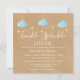 Apresentando nuvens azuis e estrelas ouros bonitinhas em cordas, em um fundo kraft rústico, este convite para chás, chás ou casais é perfeito para todos os pequenos que estão a caminho. Adicione seus detalhes de celebração em branco para criar o convite perfeito. Projetado por Thisnotme©