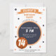 Convite de Esportes Temáticos de Basquete Moderno. Você pode alterar qualquer texto no cartão. Ótimo convite para uma festa de aniversário com tema de basquete.