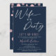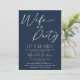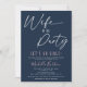 Elegante mas simples. Este convite de festa de solteira apresenta o título divertido 'Esposa do Partido' em um roteiro de caligrafia branca em um fundo azul de marinho de tendência que pode ser alterado para qualquer cor. O modelo moderno é fácil de personalizar.