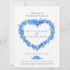 Tinta azul e branca, desenhada à mão, e convites para casamento de coração de aquarela. Flores simples e azuis esqueçam-me-nots com pistas de desenho amarelo e verde e arte em forma de coração acrescentam suas próprias iniciais de monograma no verso e a redação na design da frente. Outros itens correspondentes estão disponíveis. © Tinta original e lavagem com aquarela e design por Sarah Trett para www.mylittleedenweddings.com no Zazzle.