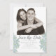 Este casamento de fotos impresso e personalizado salva os cartões de data, com uma ilustração de flores sem esquecer-me, em azul claro e verde, com uma ilustração de buquê de esquecer-me e não-fazer correspondente no verso. Use os campos modelo para personalizar facilmente esses cartões salve a data com sua foto e informações. Tem mais informações que você precisa incluir? Selecione a opção PERSONALIZAR para adicionar texto a essas placas.