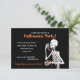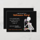 Concurso de Halloween com um esqueleto comendo doces de Halloween. O texto personalizável está pronto para ser editado com seus próprios detalhes.
