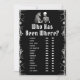 Adicione um entusiasmo estranho ao seu chá de panela com nosso esqueleto Gótico de Halloween "Quem esteve onde?" Jogo! Apresentando designs escuros e góticos com motivos esqueletos, este jogo é perfeito para uma comemoração temática de Halloween. Os hóspedes vão se divertir adivinhando quais locais assustadores ou destinos de viagem cada pessoa na sala visitou, fazer-o uma maneira interativa e envolvente de conhecer todos. É uma maneira emocionante de adicionar alguma diversão arrepiante ao seu chá de panela e celebrar a noiva no verdadeiro estilo do Dia das Bruxas! 🦇 💀 💀