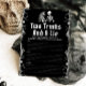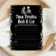 Traga uma diversão assustadora para o seu chá de panela com o nosso Skeleton do Dia das Bruxas Negra "Duas Verdades e uma Mentira"! Este estranho jogo, com designs góticos escuros e motins esqueletos, acrescenta o toque perfeito do Dia das Bruxas à sua celebração. Os convidados partilharão duas verdades e uma mentira sobre eles próprios, enquanto outros adivinham qual é a mentira. É uma maneira divertida e interativa de engajar todo mundo e adicionar uma reviravolta assustadora a este jogo clássico de festas, perfeito para o seu chá de panela temático do Dia das Bruxas! 💀 🕸️