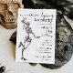 Morrendo na festa? Ponha o tom para uma celebração assustadora com este convite para o Dia das Bruxas de esqueleto! Apresentando um design moderno e gótico com um esqueleto dançante e uma tipografia ousada, este convite do partido de Halloween é perfeito para encontros adultos com uma reviravolta na moda. Este convite de esqueleto pode ser personalizado e enviado digitalmente ou como um cartão físico.