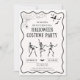 Convide seus hóspedes fantasmas em estilo com este convite de festas de fantasia de Halloween, manuscrito, com três esqueletos dançarinos engraçados e uma borda retrógrada. A charmosa trabalho de arte pintada à mão inclui morcegos assustadores, uma teia de aranha com uma aranha balançante, e uma tipografia lúdica inspirada na safra — perfeita para uma divertida e alegre celebração do Dia das Bruxas. Engraçado e festivo, esse convite combina detalhes desenhados à mão com um toque de talento de safra. É ideal para qualquer um que planeja um cheio de personalidade de uma festa de fantasia. Os esqueletos ilustrados e o quadro ao estilo de rabisco adicionam uma vibração artística única que fará o seu convite sobressair.