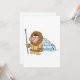 Um esquimó vestido calorosamente de pé ao lado do iglu. Este design parece realmente eficaz nestes Convites