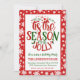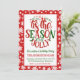 Adote a magia da estação com este convite de festas de Natal divertido e festivo que exude alegria de férias com seu fundo vibrante em flocos de neve e clássicamente tradicional design. A frase "Esta é a estação a ser alegre" é brincalhosamente escrita em letras vivas vermelhas e verdes, atraindo convidados com a promessa de riso, boas companhias e tratamentos sazonais. Personalize preenchendo os detalhes do seu evento e este cartão chamará os destinatários a se reunirem e compartilharem na alegria da temporada de férias.