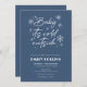 Floco de neve branco Está frio fora do chá de fraldas azul. Convite.
