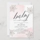 Este elegante convite de chá de fraldas "bebê, está frio lá fora", de drive-by/drive-thru, apresenta um fundo de rosa claro em aquarela com falso falso falso floco de neve prateada. O verso apresenta um fundo de neve gelada. Personalize-o para as suas necessidades. Você pode encontrar produtos correspondentes na minha loja.