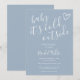 Um convite de chuvinha de bebê de inverno minimalista moderno com um coração desenhado à mão e tipografia estilosa em um fundo azul empoeirado. Criado por Thisisnotme©