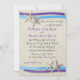 Starfish, frita azul e destino roxo convite para casamento na praia para o seu casamento no mar. Fundo do estilo da costa da meteorologia em tons de areia quente.