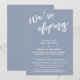 A distinção deste conjunto se deve à fonte moderna de escrita manual utilizada para as frases de destaque. Nesta peça, a fonte manuscrita foi usada para criar um gráfico que representa as palavras "we're eloping". Use os campos do modelo para adicionar seus detalhes pessoais e tornar este design moderno e único. O fundo pode ser alterado para qualquer cor de sua preferência. Por favor, entre em contato para qualquer solicitação especial ou para obter ajuda na personalização. // 100 //