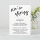 A distinção deste conjunto se deve à fonte moderna de caligrafia manuscrita usada para as frases de destaque. Nesta peça, a fonte manuscrita foi usada para criar um gráfico que descreve as palavras "we're eloping". Use os campos do modelo para adicionar seus detalhes pessoais e tornar este design moderno e único. O fundo pode ser alterado para qualquer cor de sua preferência. Por favor, entre em contato para qualquer solicitação especial ou para obter ajuda na personalização. // 100 //
