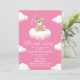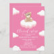 Celebre sua garotinha no caminho com este doce convite de chá de fraldas "Estamos na Nuvem Nove". Apresentando um fundo suave, inspirado no céu, nuvens brancas fofas e um adorável ursinho de pelúcia sentado e sorrindo entre as nuvens, este design minimalista, mas que anima o coração, é perfeito para uma celebração sonhadora. Personalize facilmente online com os detalhes do seu chá para que os convidados de guardas sejam tesouros.