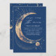 Este convite a chá de fraldas azul marinho, encantadoramente intitulado "Estamos sobre a Lua", mistura alegria e maravilha com o seu design espantoso que inclui uma lua crescente metálica, estrelas cintilantes, constelações distantes, galáxias misteriosas e maravilhas celestes. Ela reflete perfeitamente seu gosto sofisticado, a profundidade de sua alegria, e a imensa felicidade que esta ocasião traz.