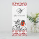 Convites ESTAMPADO DE FLORES VERMELHAS MONOGRAMA DAMASCO li