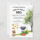 Prepare-se para o seu churrasco de aniversário no quintal com este convite com borboletas fluviais, um cão amigável, uma árvore torrencial e uma grelha de tamanho.