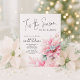 Esta é a Chá de panela de Natal da Estação Poinsettia. Disponível digitalmente e impresso. As palavras "Esta é a estação" estão numa escrita moderna não editável. Personalize facilmente o resto das palavras conforme necessário. Apresentando uma aquarela esbranquiçada poinsettia rosada com ilustração do anel do noivado.