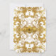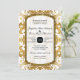 Esta coleção de convites para o casamento apresenta uma mistura popular e de tendências de vintage, tradicional clássico e de texto de tipografia contemporânea. Você pode personalizá-lo facilmente selecionando a cor de fundo usando o botão personalizá-lo e, em seguida, o selecionador de cores de fundo. Começa com uma imagem elegante, na moda e brilhante de aspecto com brilho dourado (SEM REAL GLITTER, esta é uma imagem impressa plana e gráfica) numa cor damasco rococó rico, rococó, rococó, rococó. Em seguida, um simples quadro gráfico, tipográfico, de dupla borda, com cantos entalhados e uma parte superior suavemente arredondada em brilhos cintilantes ouros, com um contorno preto, define o fundo de texto branco suavemente fino interno. O verso tem uma estrutura de estilo de etiqueta em que as iniciais da noiva e do noivo são apresentadas com uma seringa de ornamentado no meio. O texto do seu convite de casamento é fácil de preencher usando as camadas de modelo. Este convite de casamento é perfeitamente adequado para eventos de empate negro, casamentos no inverno formais, reuniões elegantes e temas da era Edwardian, Excelente Gatsby, Manor House Inglês ou Temas da Era Edwardiana. CORES: brancas, pretas, douradas e brancas