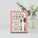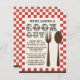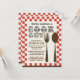 Este convite de CHURRASCO, ao estilo rustico e ocidental, pode ser usado para seu próximo CHURRASCO ao estilo sul, ou qualquer tipo de biscoito de quintal. Reúna seus amigos e vizinhos e divirta-se. O plano de fundo apresenta um padrão verificado em branco e vermelho como uma toalha de mesa clássica, escrita como "Estamos tendo um cookout" em fontes de estilo vintage de rico. Ilustrado por um garfo e uma colher.