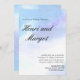 Convite de Casamento com Estilo de Letra Fluido e Aquarela Azul Pastel e Roxo