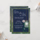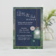Garra de Mason de estilo country com luz branca brilhante pendurada sobre um fundo azul escuro. Flores brancas e cor-de-rosa acendem o design. Isto apresenta um olhar antiquado ainda é na moda para a noiva de hoje. Edite facilmente o convite para o seu casamento.