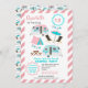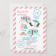 Convite de festas de aniversário super fofo para qualquer um que tenha uma festa de acampamento com retro caravana e gráficos de acampamento em tons adoráveis de azul rosa e turquesa. Um convite divertido, fácil de personalizar com seu nome pessoal e detalhes da festa sem custo extra.