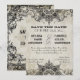 PALETA DE CORES: Pergaminho de creme envelhecido, bege e preto COLEÇÃO DE DESENHOS: Save the Date, Cartões de Anúncio de Noivado correspondentes. Baseado em fontes de tipografia vintage de gravador, desenhos de espirais e floreios e ornamentos decorativos gravados, esta é uma versão moderna de um conjunto de convites de casamento inspirado em antiguidades. Espirais barrocas talhadas em preto com floreios de folhas são combinadas com um fundo estilo pergaminho envelhecido e pintado à mão. No verso há um padrão de damasco toile com uma espiral central correspondente na cor bege taupe com o seu monograma. O monograma central é o novo sobrenome, e então os monogramas da noiva e do noivo para criar um convite com três monogramas. Se não desejar as iniciais da noiva e do noivo, basta apagar o que está lá e deixar o campo em