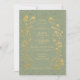 Estilo de vindima inspirou convite de casamento vertical com motins florais de ouro e borboletas em fundo verde de senso macio
