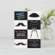 Convite para festa de despedida de solteiro apresenta 4 estilos de bigodes em preto e branco.